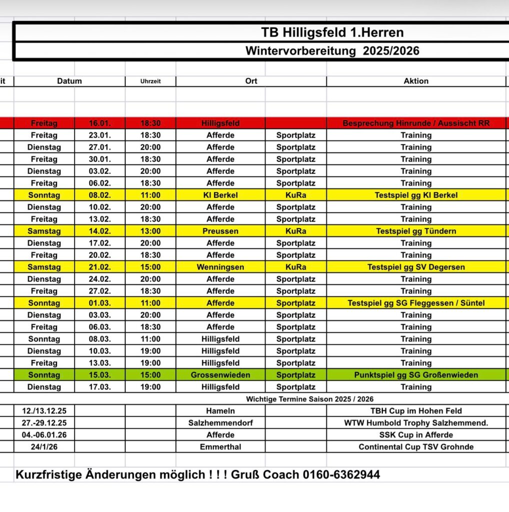 1. Herren Wintervorbereitung startet am 23.01.2026